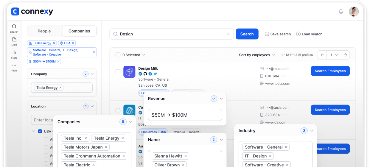 Advanced Filters: Funding events, growth indicators, hiring patterns